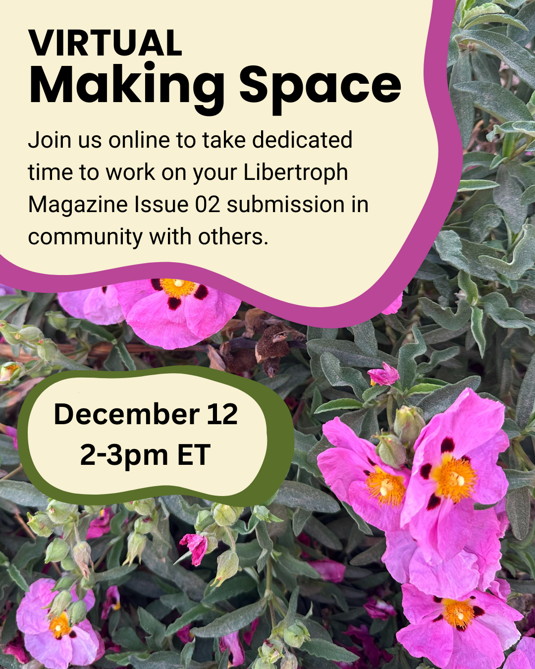 This online space is available if you’d benefit from reserved time to work on your Issue 02 submission, in a community space where others are working on their submissions.